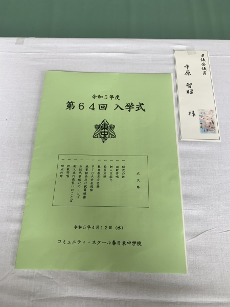 4月12日、13日は春日東中学校と春日東小学校の入学式に、来賓として参列いたしました
