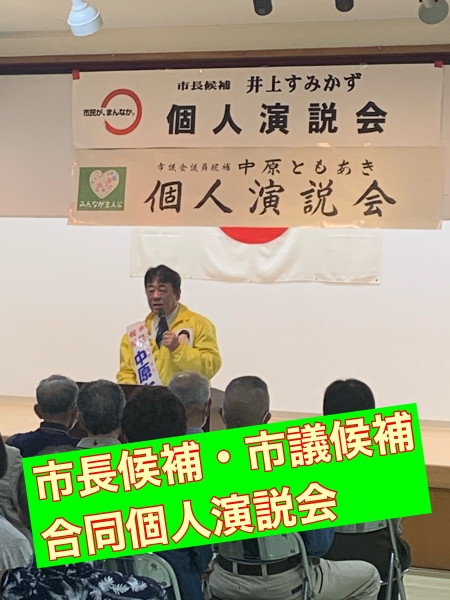 井上すみかず市長候補と合同個人演説会を開催しました。